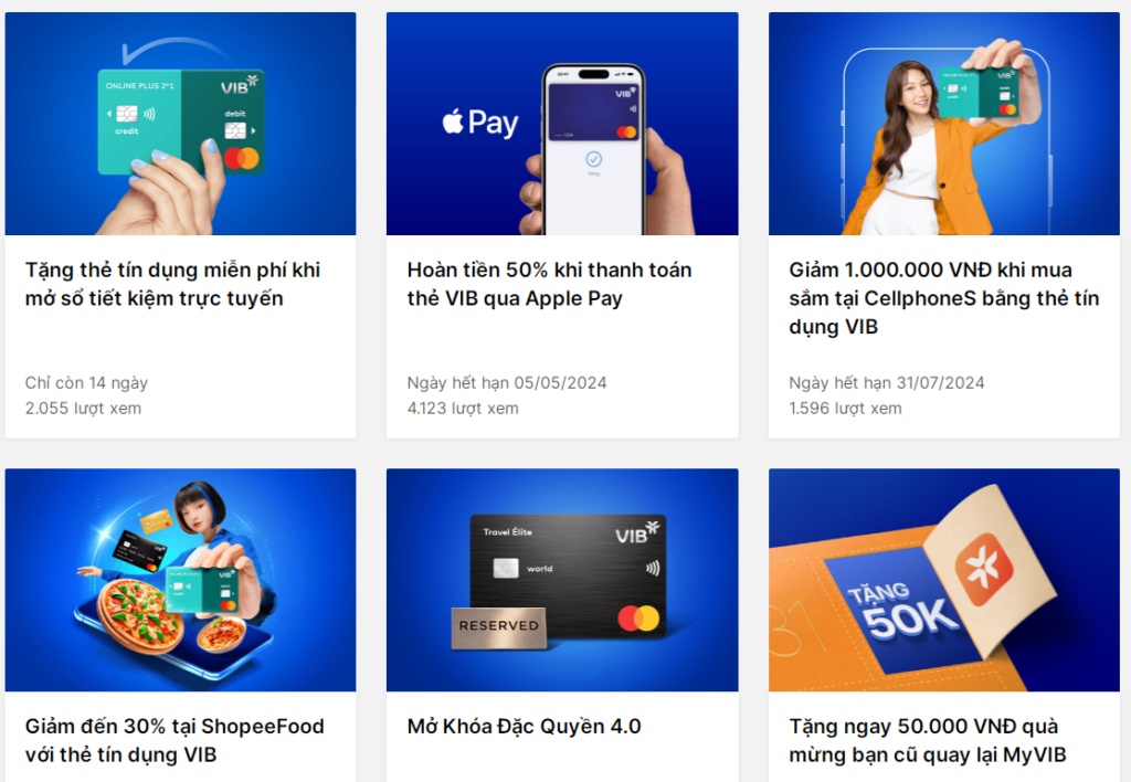 Ngân hàng VIB Bank – Ngân hàng TMCP Quốc Tế Việt Nam. VIB cung cấp các dòng thẻ tín dụng.