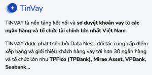 TINVAY được phát triển bởi Data Nest, đối tác cung cấp điểm xếp hạng và giới thiệu khách hàng vay tới hơn 30 ngân hàng và tổ chức lớn như TPFico (TPBank), Mirae Asset, VPBank, Seabank…